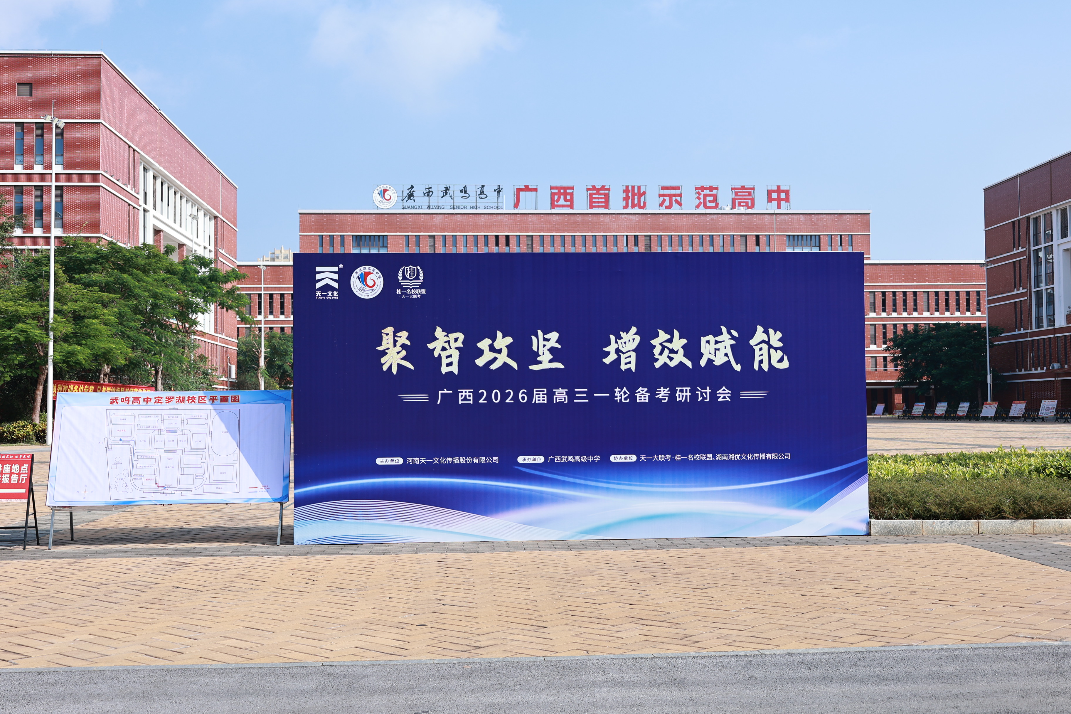 金秋十月,丹桂飘香。10月12日,由河南天一文化主办、广西武鸣高级中学承办、天一大联考•桂一名校联盟及湖南湘优文化协办的天一大联考·广西2026届高三一轮备考研讨会在广西武鸣高级中学隆重举行。来自广西各地市30余所高中的学校领导、骨干教师共计600余人齐聚一堂,共商2026届高三一轮备考大计。