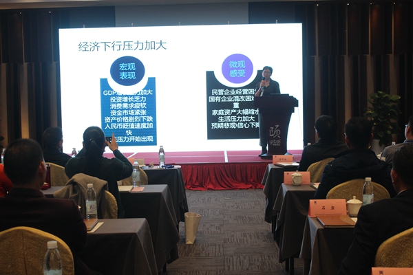 紧接着南开大学经济学教授、博士生导师戴金平女士对“当前经济与金融困境:周期与结构视角”进行了主题演讲,戴教授从宏观表现和微观感受两方面分析了当前经济发展形势的严峻,从各个层面揭示了中小企业的发展困境,同时对“天一文化”在当前的形势下依旧表现出良好的发展势头寄予了充分的肯定。