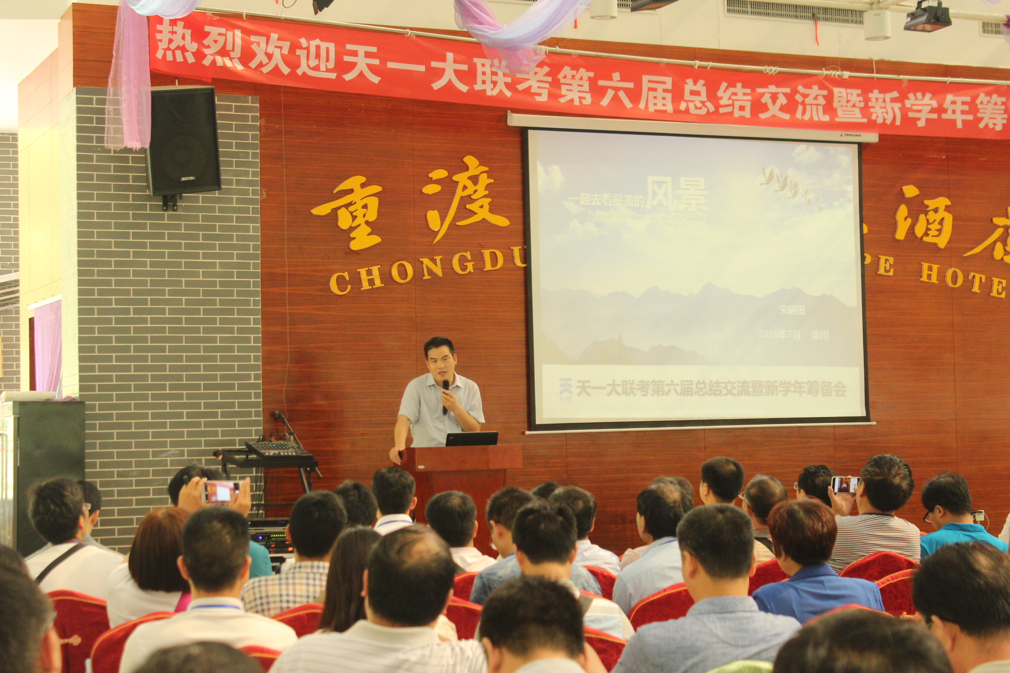 2016年7月25日上午9点,天一大联考第六届总结交流暨新学年筹备会在洛阳重渡沟风景区举行,来自河南省内近300所名校的领导、老师和客户代表等600余人参加了本次会议。