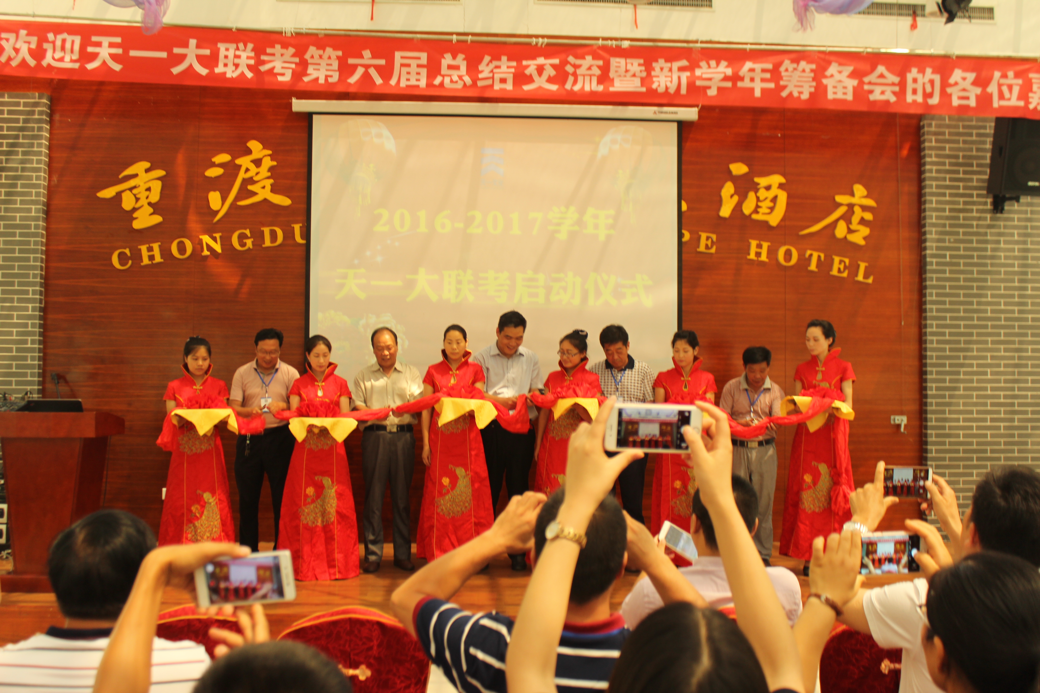 会上,天一文化总经理宋耕田先生、考试研究院顾问魏现州先生、原阳实验高中校长肖刘文先生、淮阳中学校长高远征先生和栾川一中杨主任一同走上台前,举行2016-2017学年天一大联考剪彩仪式,标志着新学年天一大联考正式启动!未来,天一人将以"一流的质量、良好的信誉、周到的服务"为宗旨,积极为参联学校提供优质的试卷和服务,为天一公司的不断发展和建设做出我们应有的贡献!