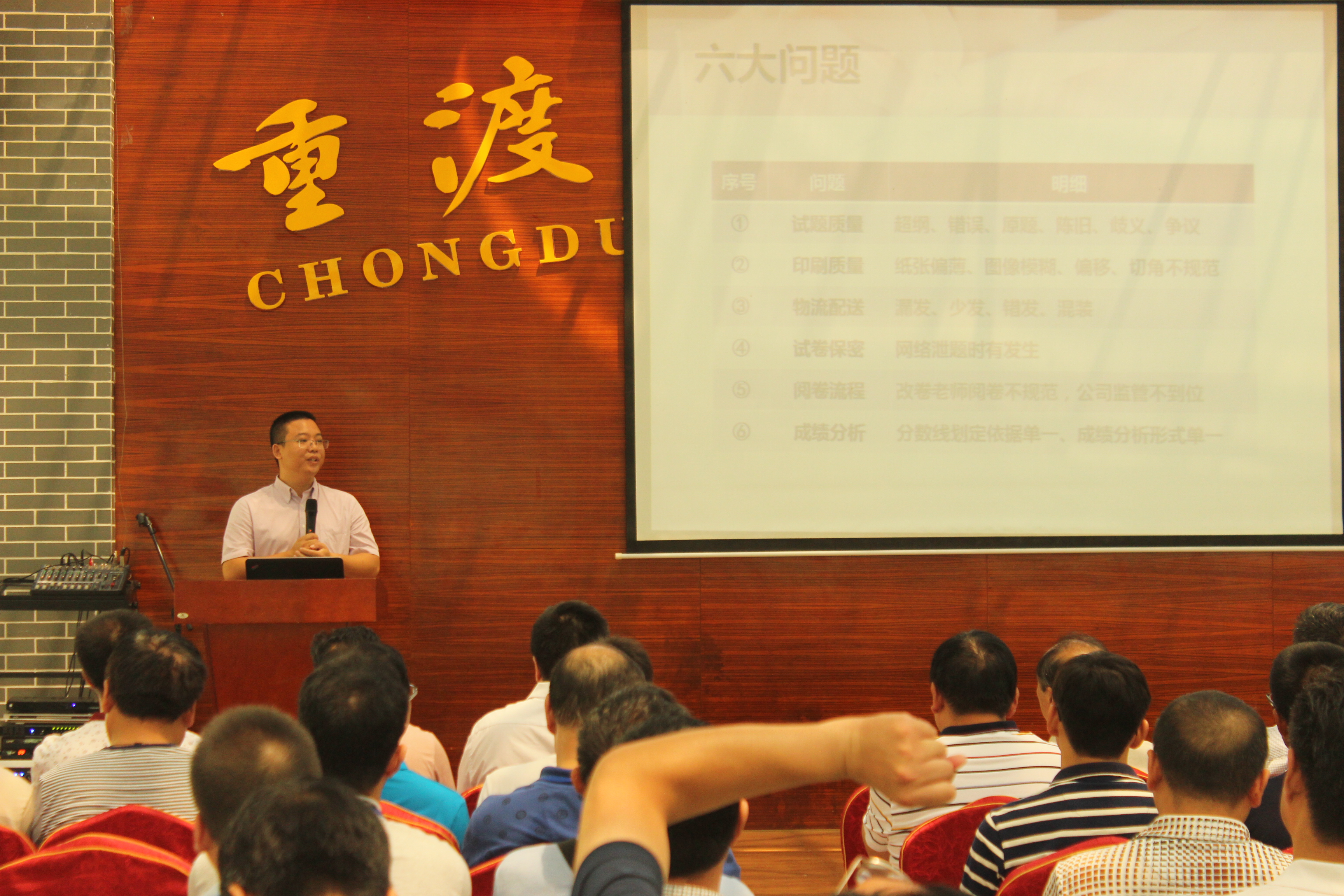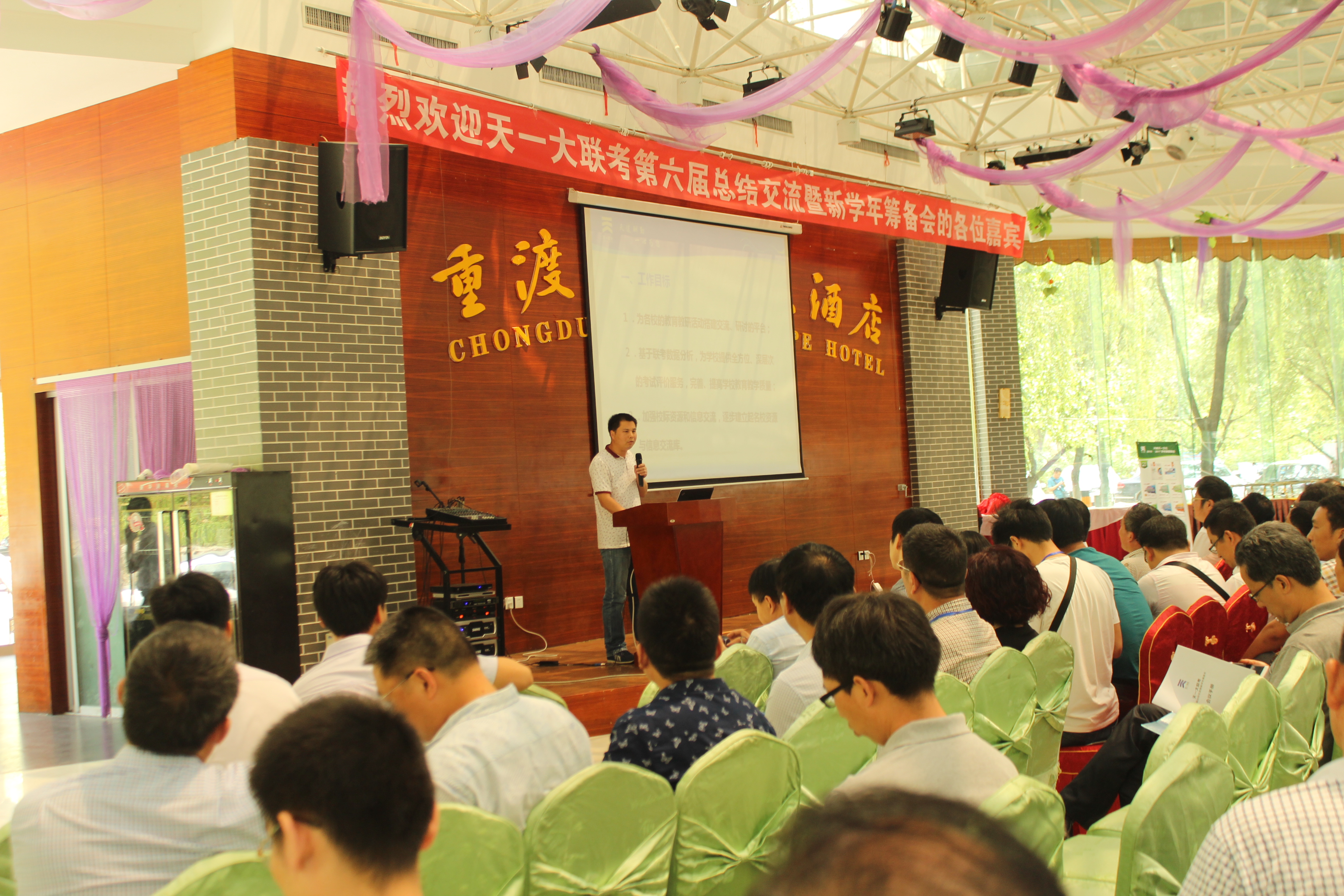 随后,天一文化营销总监陈更生先生为大家介绍了2016-2017学年天一大联考考务规范,陈总从六大问题入手,提出了新学年具体的联考改进方案,并公布了新学年考务规范及天一大联考的立体服务概念。天一大联考的发展离不开大家的支持与信任,未来的路任重而道远,天一人一定不负众望,更好更科学地为一线学校师生提供更好的产品和更贴心的服务!