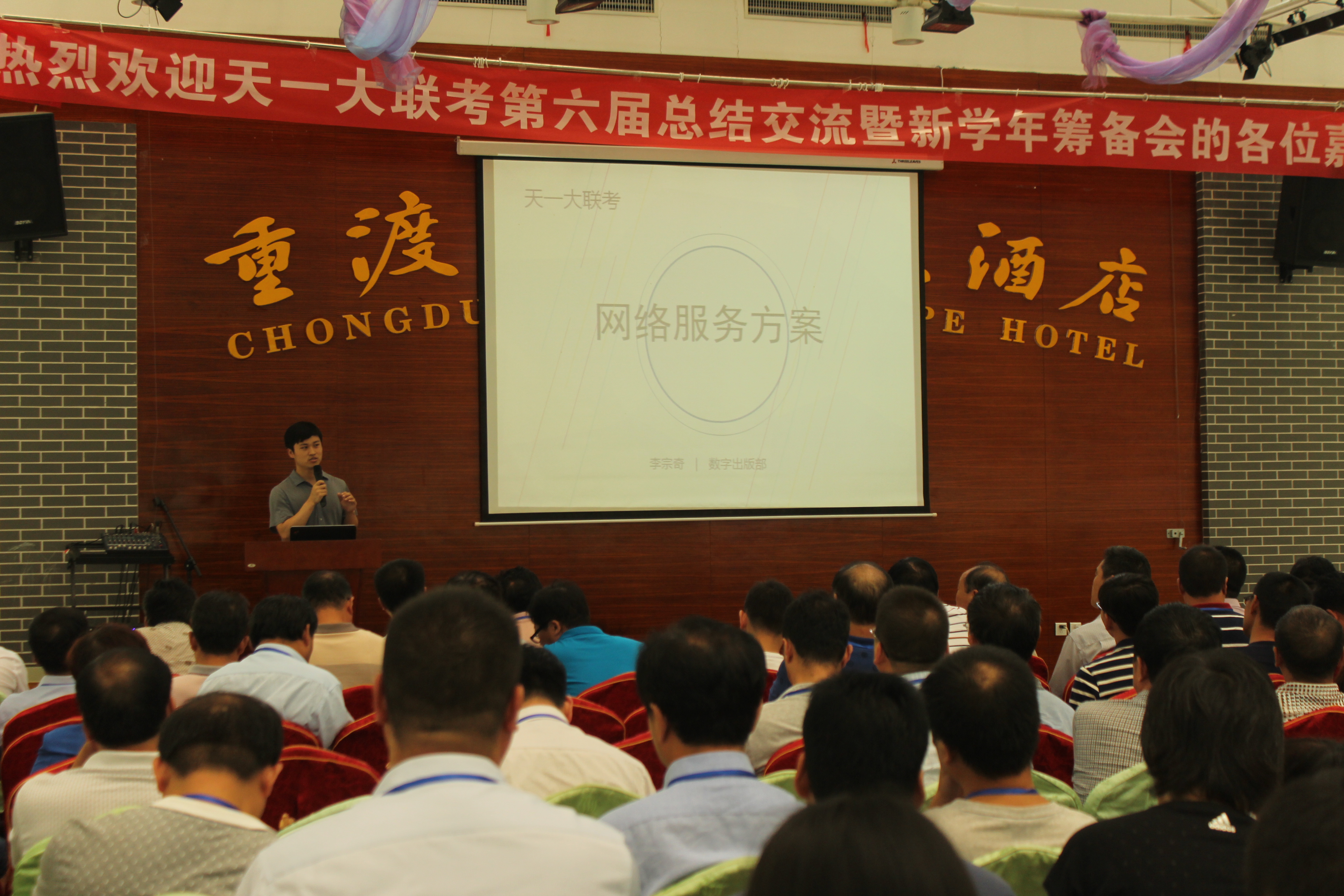 大联考立体服务的开展与发扬光大离不开网络科技的支持,会上,数字出版部经理李宗奇先生为大家介绍了天一大联考网络服务方案。天一大联考从来就不仅仅只是一场考试,一个更强大的全方位的数据平台正在逐步实现,更好地服务学校、老师、和考生!