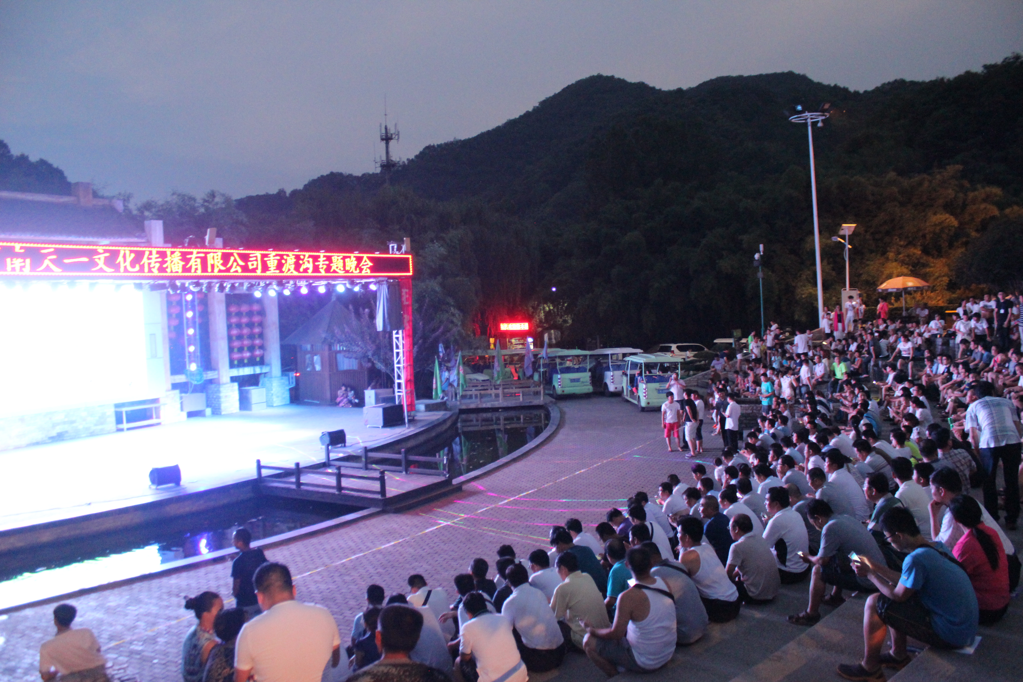 会后,为答谢各参联学校的支持与厚爱,天一公司在重渡沟景区为与会的领导和嘉宾们举行了一场别开生面的专题晚会。晚会为大家准备了武术表演、杂技演出、歌舞演绎,更是特意为大家准备了地地道道的关东民间艺术——二人转表演,他们边说边唱,且歌且舞,使得现场观众热情高涨,掌声连连。现场更有西瓜大战和喝酒比赛,赛后,大家完全忘却了旅途的疲惫与高温的燥热,只有现场的喜悦与感动。本次晚会的成功举办不仅增进了天一公司与校际间的感情,也与与会嘉宾一同分享了喜悦与收获,在新的目标下,我们也将共同创造新的奇迹,共同创造飞扬的明天!