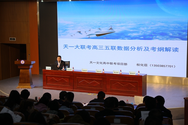 在天一大联考高三第五次联考结束之际,为对本次考试进行总结分析,进而有针对性地指导后期教学,同时,也在2019年高考的最后冲刺阶段帮助各学科老师全力备考,4月13日,天一文化在郑州市第十一中学召开2018-2019学年天一大联考第二次总结交流暨高考备考指导会。