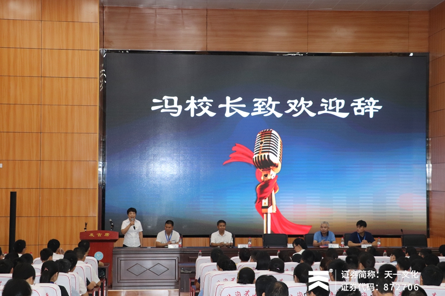 上午08:30,会议准时开始,扶沟高中冯校长致会议欢迎辞,冯校长首先对各位的到来表示热烈的欢迎,随后向与会来宾介绍了扶沟县高级中学的基本情况,并对现阶段与天一文化的合作深度、广度、亲密度表示了肯定。