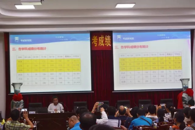 会议第四项,由天一文化考试研究院副院长崔泽先生对本次考试做命题与数据分析报告。崔院长详细介绍了本次考试的命题思路,并对考试数据进行了有效分析。通过分析旨在帮助各校及时发现学科存在问题,并有效改善教学。