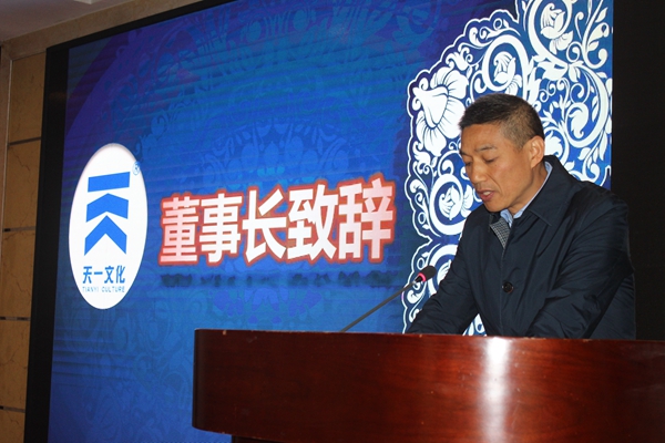 会议开始,天一文化董事长兼总经理董献仓先生致欢迎词。董总表示,面对新时代、新形势、新任务,天一有新自觉、新自信、新担当。未来,天一希望能和各界同仁一起做好教育。