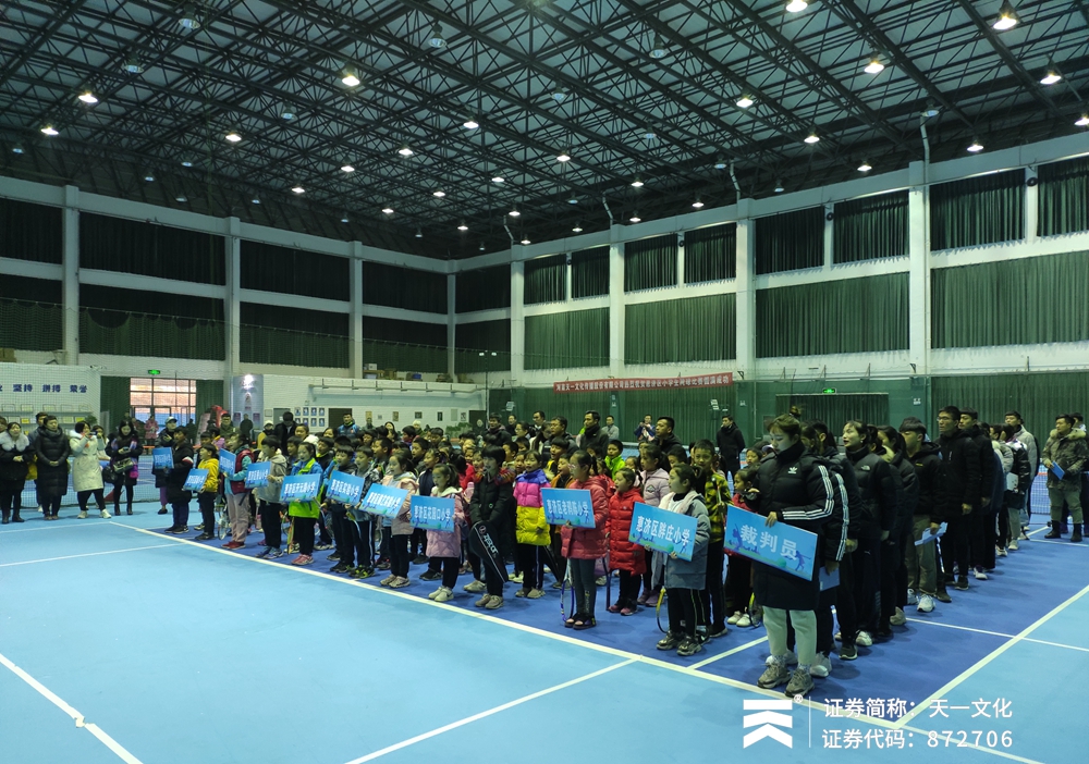 在比赛现场,天一文化常务副总经理李军海受邀作为开幕式嘉宾讲话,李总表示,天气虽然寒冷,但是难抵在场参赛选手的热情,为了本场比赛更好地举行,我们为大赛准备了精美的图书奖品,这些图书是公司文化出版的明星产品,希望各位小选手能全力以赴,赛出自己的最好成绩,最后祝愿2019惠济区小学生网球比赛圆满成功!