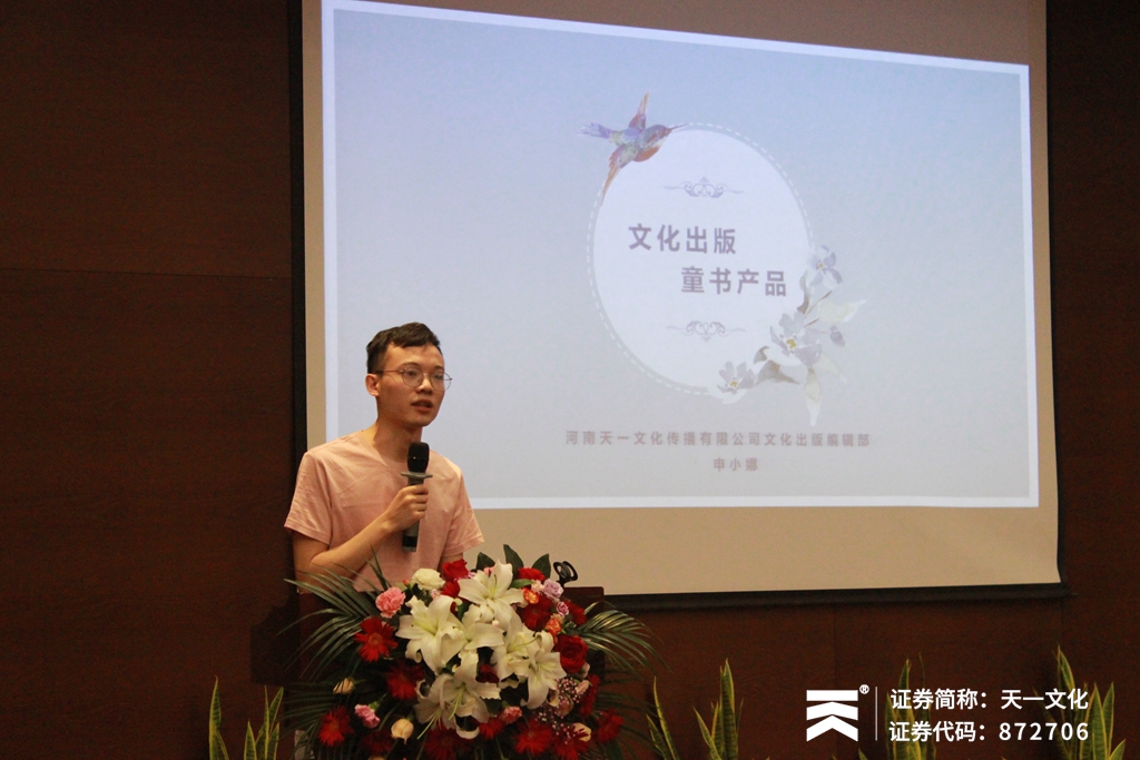 会议由河南天一文化传播股份有限公司文化出版营销部及文化出版编辑部联合主办,人力行政部协办。邀请到场的客户有常青藤爸爸(北京)教育科技有限公司内容总监姚兰女士、绍兴诗云文化用品有限公司总经理贺超先生、慧童空间联合创始人潘利明先生、徐州市万卷图书有限公司总经理张珍女士、北京在唐文化有限公司新媒体营销总监王家政先生等20多位行业大咖。