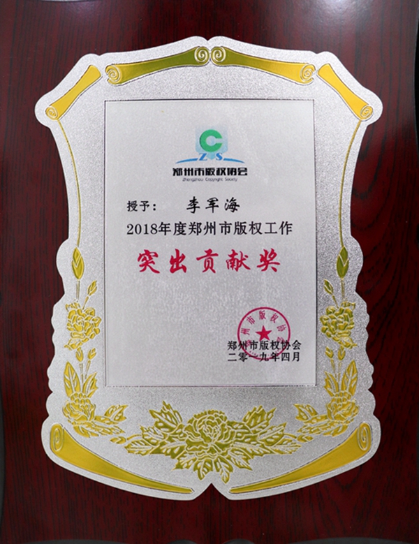 在随后进行的郑州市版权协会2019年年会中,回顾了各内资单位2018年的基本工作,并对2018年度优秀内资出版单位进行了荣誉表彰。天一文化荣获“2018年度版权工作先进单位”,公司常务副总经理李军海先生荣获“2018年度郑州市版权工作突出贡献奖”。