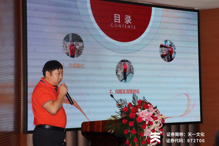 随后,天一文化高中联考研发部主任权化臣先生、高中教辅研发部主任朱道友先生、财务部经理李波先生、印务部经理耿守宾先生、物流部经理赵国振先生也分别对各流程、各模块进行了简单介绍。