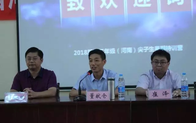 会上,洛阳一高副校长陈建银先生与天一文化董事长董献仓先生分别致欢迎辞,表达了对本次高三年级尖子生培训寄予的厚望。之后,天一文化考试研究院副院长崔泽先生做项目介绍。崔院长从“为什么培养尖子生?”、“怎样培养尖子生?”两方面阐述尖子生培养问题,并简要介绍了本次暑期尖子生培训的定位、思路、课程安排等情况。最后,来自洛阳一高的尹露莹同学作为参加此次特训营的代表做开营发言。
