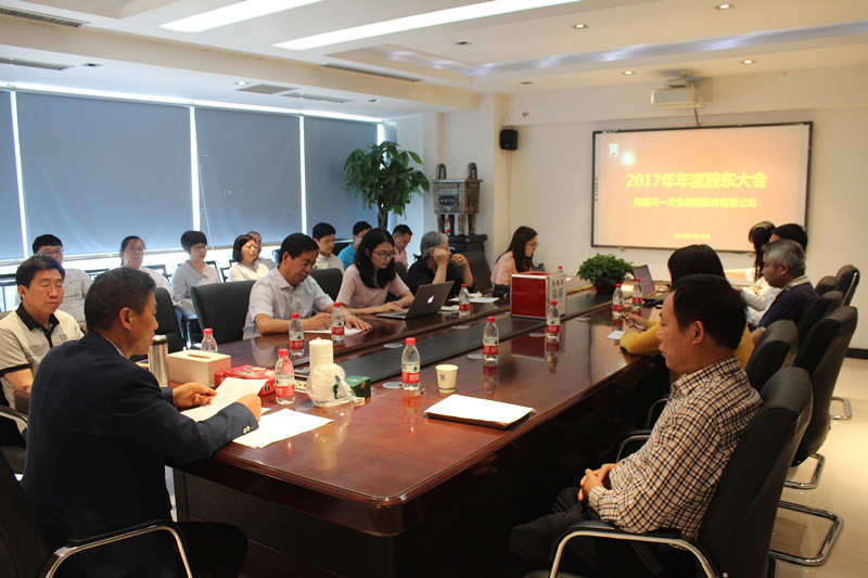 2018年5月10日,河南天一文化传播股份有限公司2017年年度股东大会在公司会议室圆满举行。公司股东或其授权代理人,公司董事、监事、信息披露负责人等出席了本次会议,公司高管,河南尤扬律师事务所法律顾问受邀列席。本次股东大会的股东及授权代理人共24人,代表股份共4068万股,占股份公司总股份的97.04%,符合《公司法》等相关法律法规的规定。