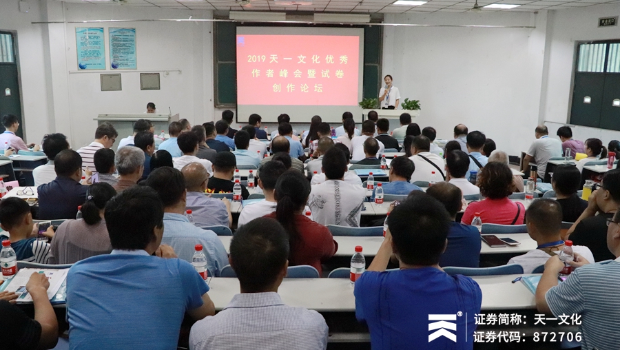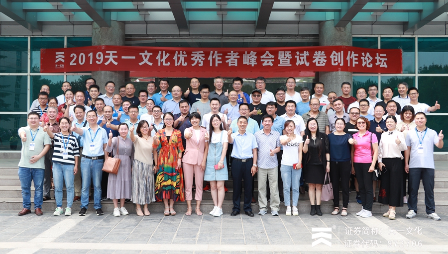 2019年7月18日,“2019天一文化考试研究院作者峰会暨试卷创作论坛”成功举办,来自全国各省市的70余位命题专家、优秀作者和一线名师齐聚一堂,共同探讨新高考改革背景下的试题命制与产品研发之路。公司领导对本次会议予以高度重视,天一文化董事长兼总经理董献仓先生、副董事长兼常务副总经理李军海先生、考试研究院执行副院长朱道友先生以及相关协作部门领导共同出席了本次会议。