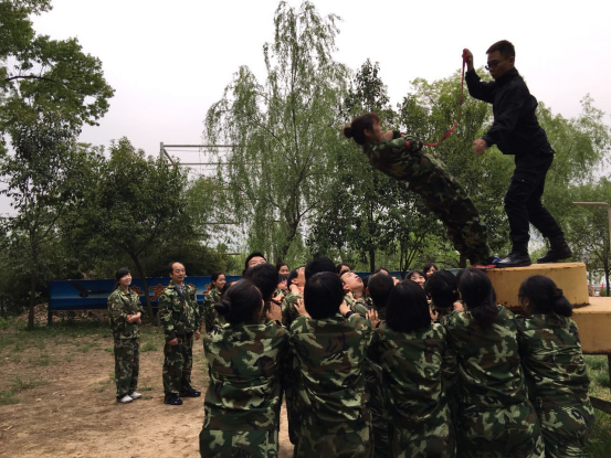 “信任背摔”就是一个人站在大约1.7m高的站台上,直躺着向背后摔下去,而地面上则是同事们用两只手臂交织组成的用来保护站台上人安全的防护网。这个项目的完成需要背摔者一方面克服自己心里的恐惧,另一方面完全相信自己的队友。回想自己站在高台时,感觉周围空气紧张的都可以用刀来切了,但听到队友们齐声喊出:“我们准备好了,请相信我们,我们爱你!”时,这团紧张冰冷的空气一刹那就消失了,这就是信任的力量。