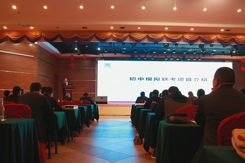 会议第四项,初中联考项目部技术顾问杜运安先生就本次模拟考试项目的目的、发展曲线、试卷质量、考试安排等方面内容向各位来宾进行了详细介绍。杜运安先生表示,初中模拟考试将立足中考改革前沿,加强对我省中招考试的政策和命题研究,探索构建科学的考试与教育评价体系,为各合作学校提供科学的考试、命题指导和教育评价服务。