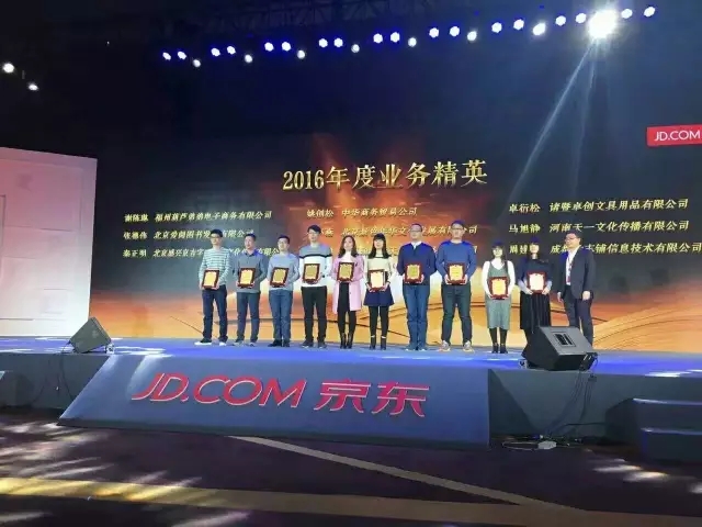 2017年1月11日,在北京国家会议中心举办的以“阅同行,悦京彩”为主题的京东图书文娱颁奖盛典上,河南天一文化传播有限公司在京东全网自营店铺、平台合作及个人业务精英三个方面名列前茅,均获得“2016年度销售飞跃'十佳'”、“2016年度最具潜力合作伙伴”与个人奖项“2016年度业务精英”三个荣誉称号。