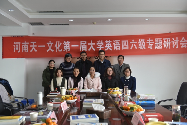 2018年12月8日,“河南天一文化第一届大学英语四、六级专题研讨会”在郑州顺利召开。郑州大学王争伟教授、河南农业大学陈洁教授、南开大学在读博士孔新柯老师、铁道警察学院李佳老师、中原工学院信息商务学院许静老师及郑州工业应用技术学院刘婷婷老师应邀出席。