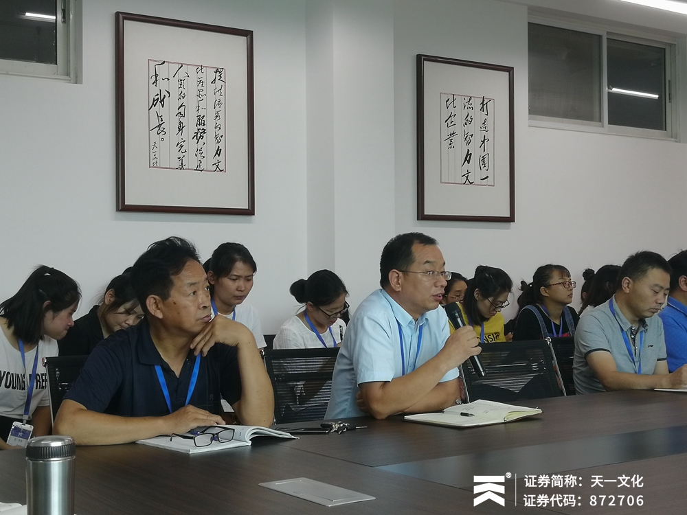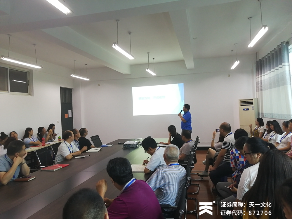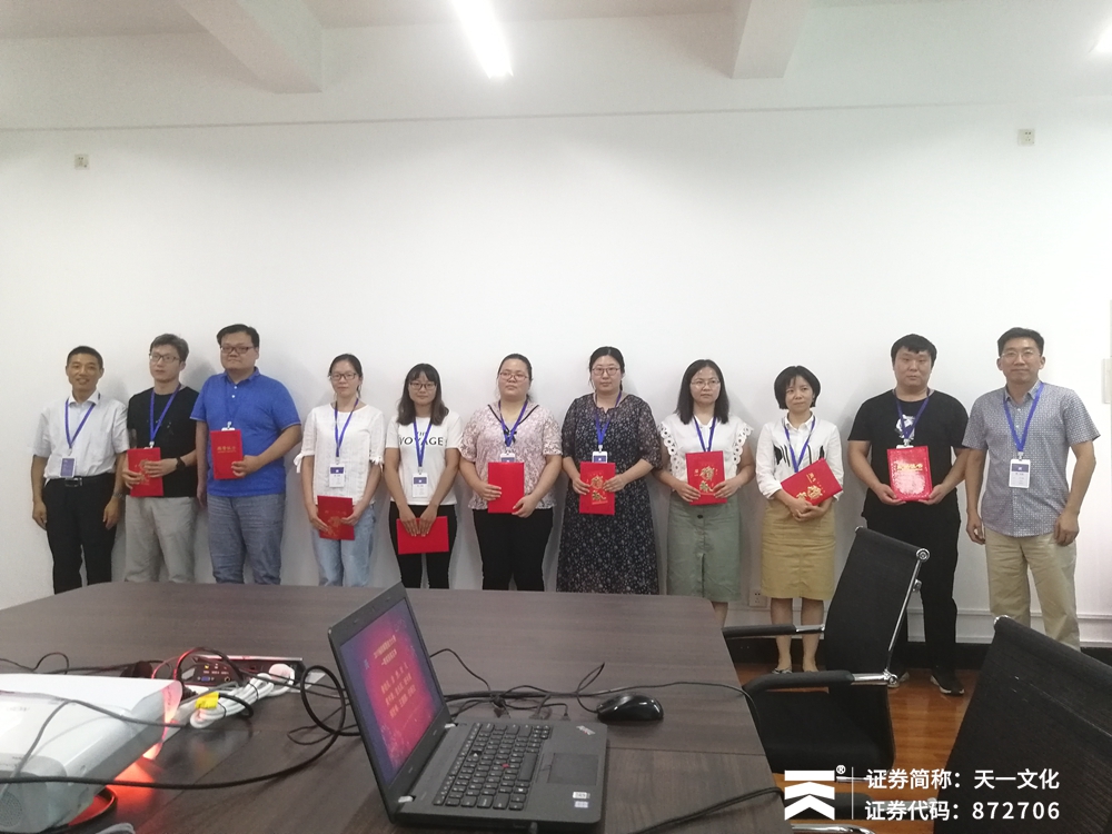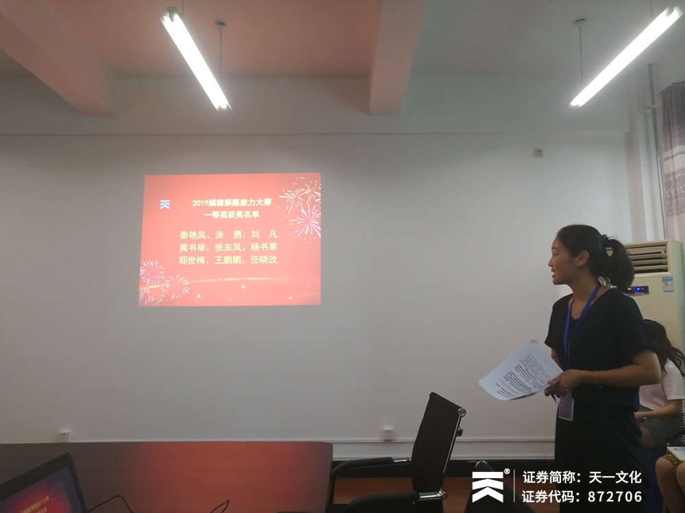 2019年9月10日,天一文化考试研究院2019年编辑解题能力大赛总结暨表彰会议在公司三楼会议室举行,会议由高中教辅研发部副主任郭亚萍主持,公司董总、李军海总、朱道友、权化臣、闵凯、王志华等部门领导及中学研发中心全体员工参加本次会议。